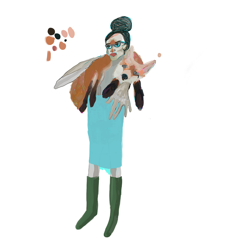 Her cardigan is light and transparent. SHe wears simple cotton clothing that makes herself and because living in the wild and with wild things has made her thinner. Sometimes, tigers and things bring her meat, but it doesn’t feel right anymore. She’ll eat cereal or carrots from rabbits. She always wears Wellington boots because she’s outdoor. She’s never thought about getting Lasik because she’s meant to be just as she is.